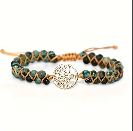 Bracelet Arbre de Vie en Pierres Naturelles – Tressage Macramé
