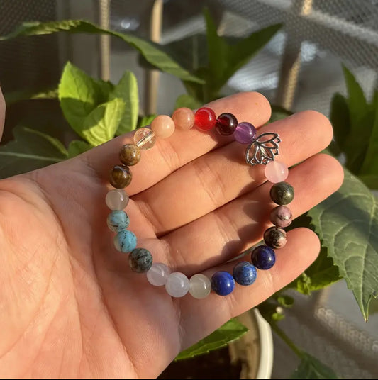 Bracelet des 7 Chakras avec Charme Feuille en Argent 🌿
