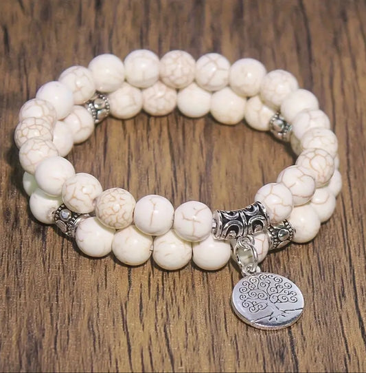 Bracelet Duo "Calme & Ancrage" en Howlite et Arbre de Vie