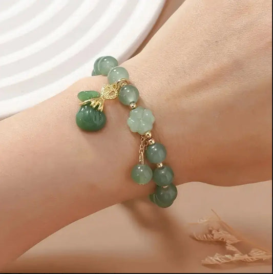 Bracelet en Jade Vert et Charms – Abondance et Chance