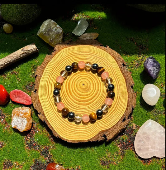 Bracelet en Quartz Rose, Œil de Tigre et Hématite – Équilibre et Force intérieure