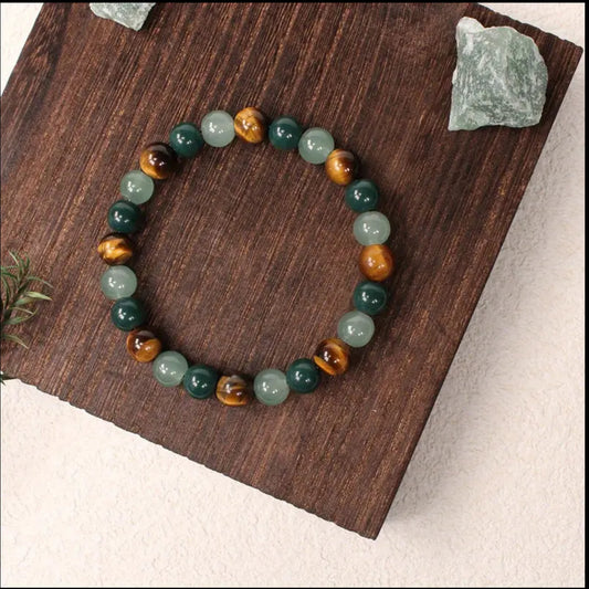 Bracelet en Œil de Tigre, Aventurine et Agate Verte – Équilibre, Protection et Sérénité