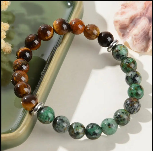 Bracelet en Turquoise Africaine et Œil de Tigre – Équilibre et Protection