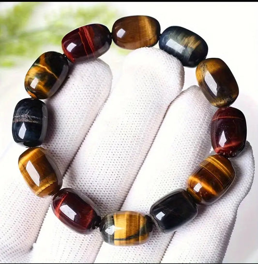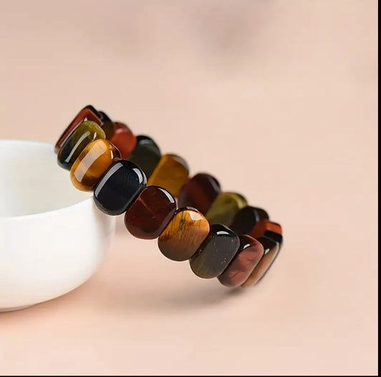 Bracelet en Œil de Tigre Multicolore – Force et Protection