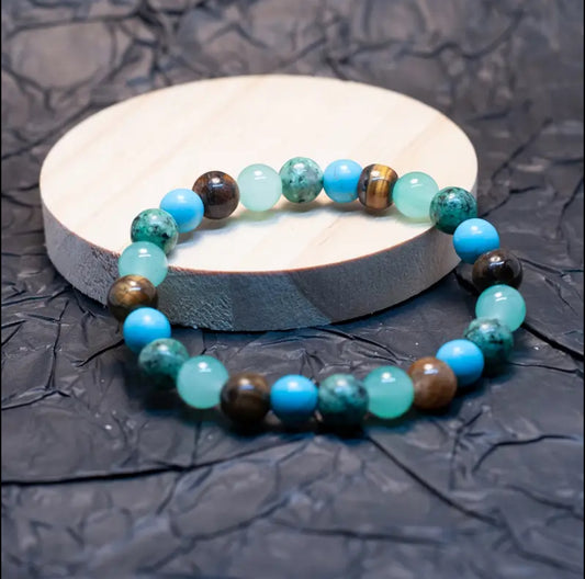 Bracelet Énergétique en Pierres Naturelles - Turquoise, Jade et Œil de Tigre