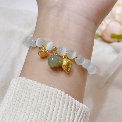 Bracelet en Œil de Chat Blanc et Jade – Lumière et Sérénité