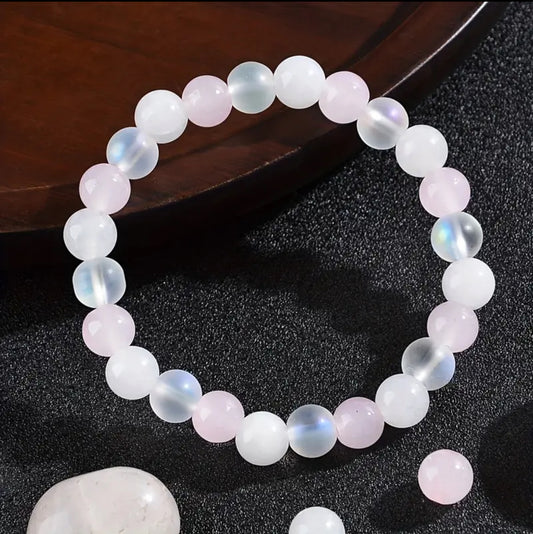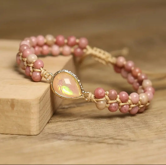 Bracelet "Douceur Irisée" en Rhodonite et Opale Scintillante