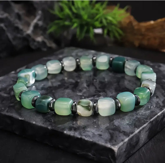 Bracelet "Équilibre Végétal" en Agate Mousse et Hématite
