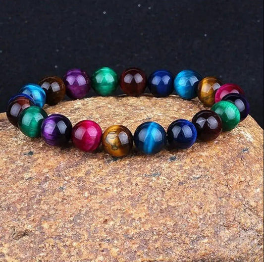 Bracelet Œil de Tigre Multicolore - Force et Protection Éclatante