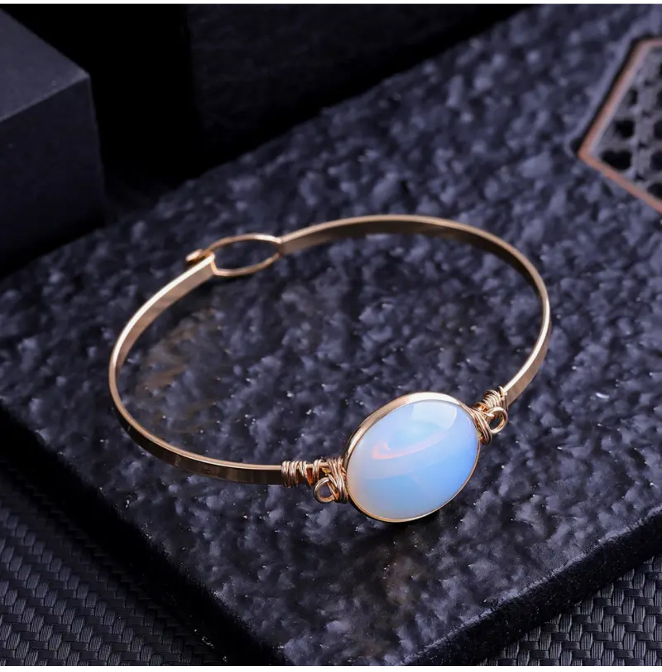 Bracelet "Clair de Lune Irisé" – Jonc Doré & Perle de Lune Ovale