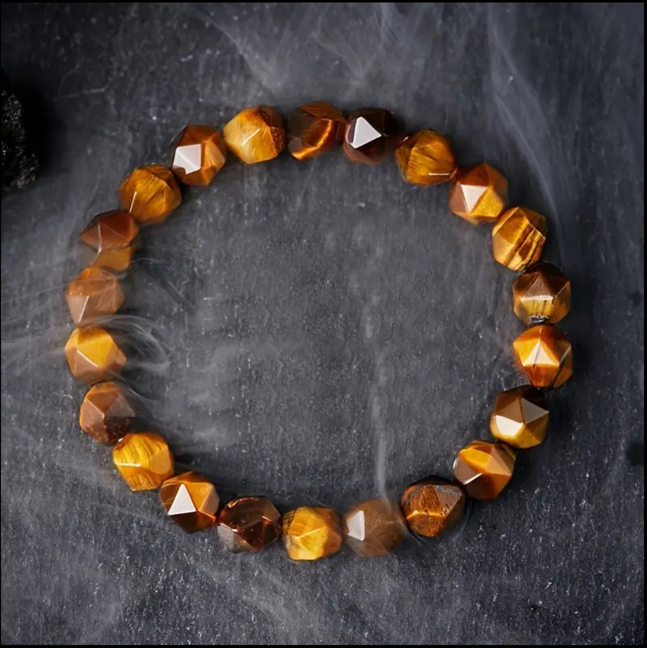 Affichez votre style tout en profitant des vertus d’une pierre puissante. Ce bracelet en Œil de Tigre est composé de perles facettées naturelles aux reflets dorés et bruns, subtilement taillées pour capter la lumière à chaque mouvement.